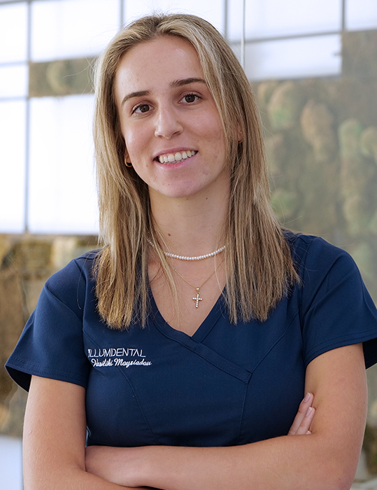 Dr. Vasiliki Moysiadou was born and raised in Nicosia, Cyprus. She graduated from Pascal English School before pursuing her dental studies at Palacký University in Olomouc, Czech Republic.